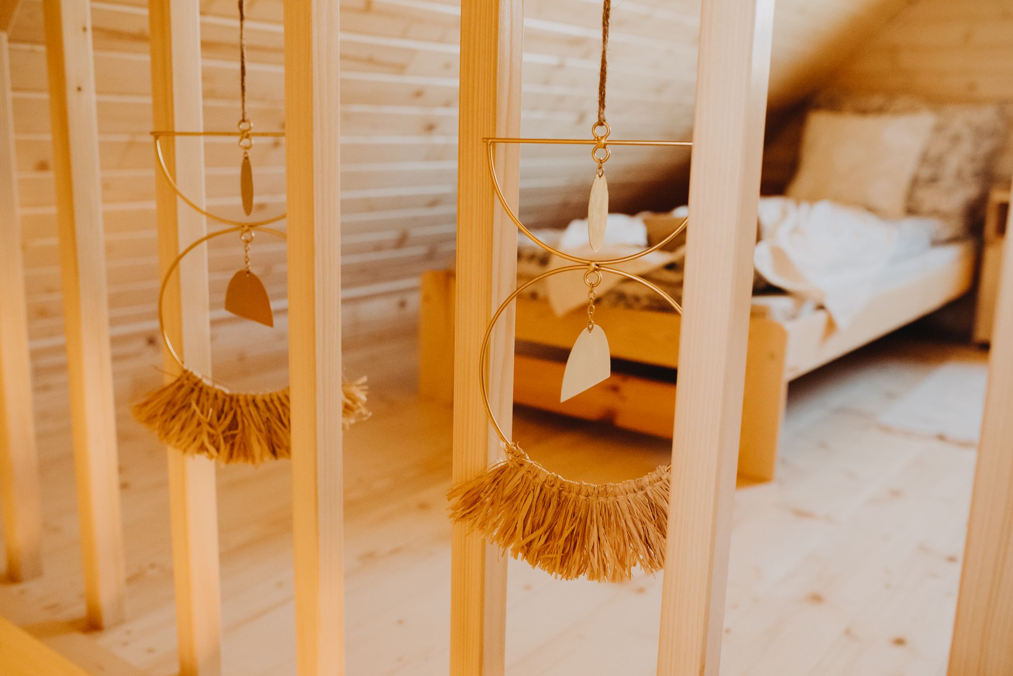 Na piętro domku wchodzicie po drewnianych schodach. Macie do dyspozycji dwie sypialnie w każdej znajdują się dwa pojedyncze łóżka. Z jednej sypialni podziwiać można Szczeliniec Wielki.