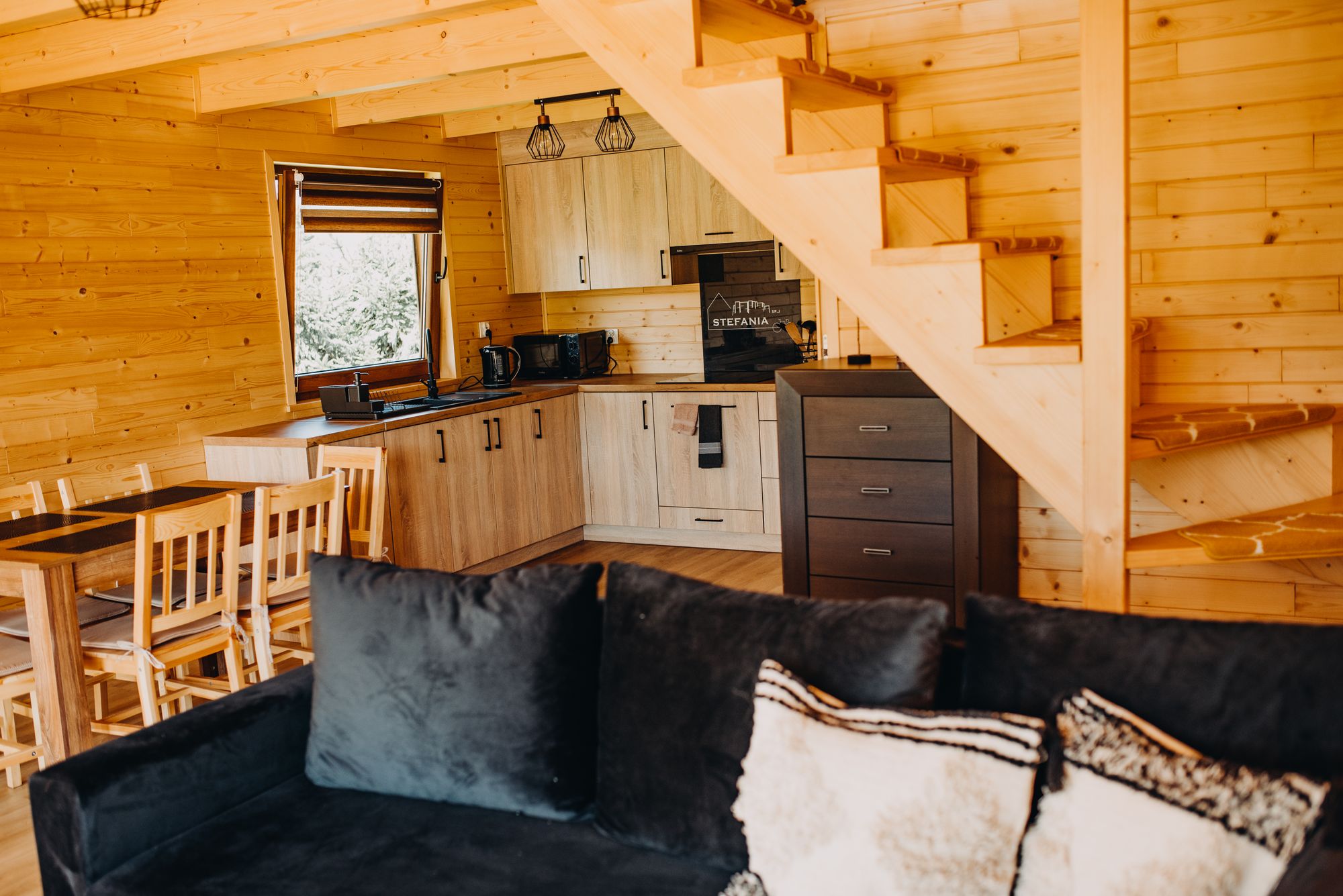 Każdy z domków przystosowaliśmy dla komfortowego wypoczynku dla 6 osób. Domki w sezonie zimowym ogrzewane są elektrycznie, więc nie musisz zaprzątać sobie głowy, aby w domku było ciepło. U nas nie znajdziesz telewizora, za to jest u nas wiele książek, gier planszowych, czy map gór Stołowych. W salonach znajdują się rozkładane dwuosobowe sofy. Salon to przedłużenie tarasu gdzie otwierając duże przejrzyste szklane drzwi cieszysz oczy niesamowitym widokiem na Szczeliniec Wielki.